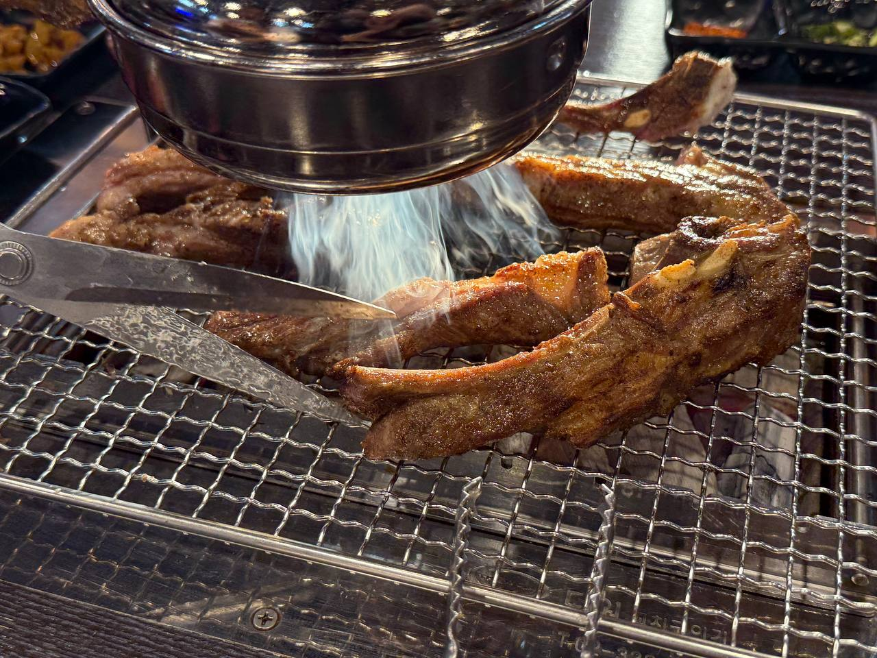 뼈와 살을 분리해서 구워주고 100%다 익히기보다 소고기처럼 80% 정도만 구워서 먹어야 촉촉하고 부드러워 맛있습니다.