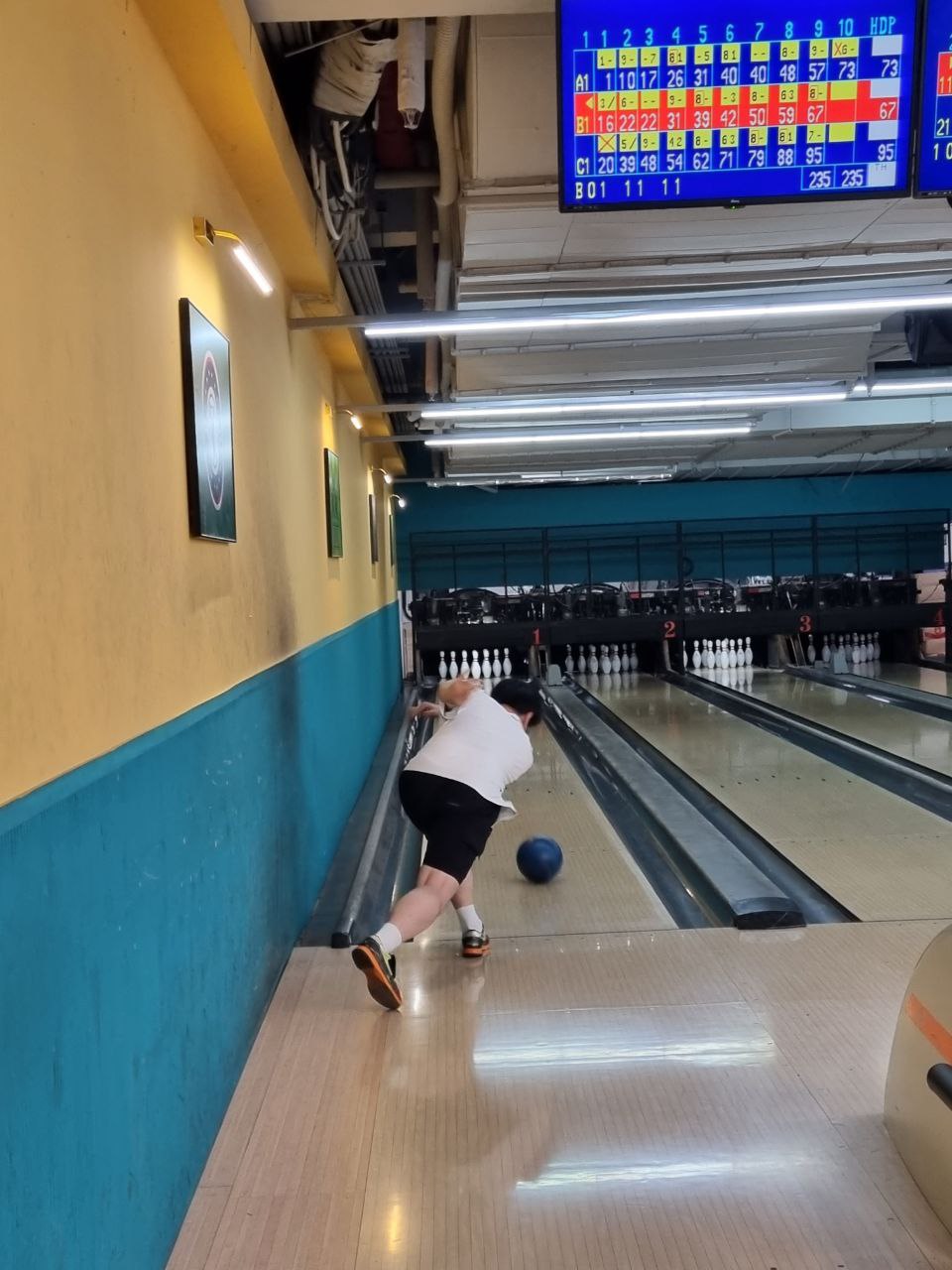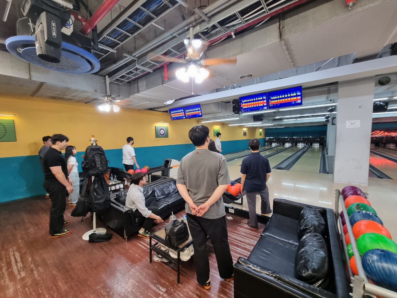 이번 모임에는 무려! 총 10명이 참석했습니다.  5 대 5를 하기위해 라인 4개를 대여를 하여 3게임을 진행했습니다~