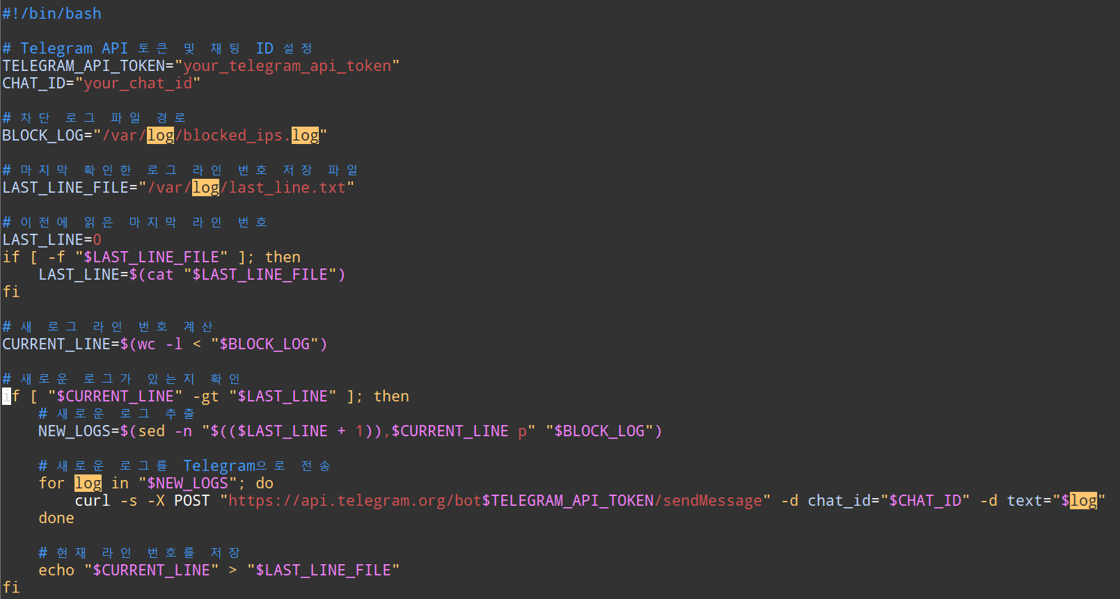 • access_log telegram알람 bash 스크립트 설정