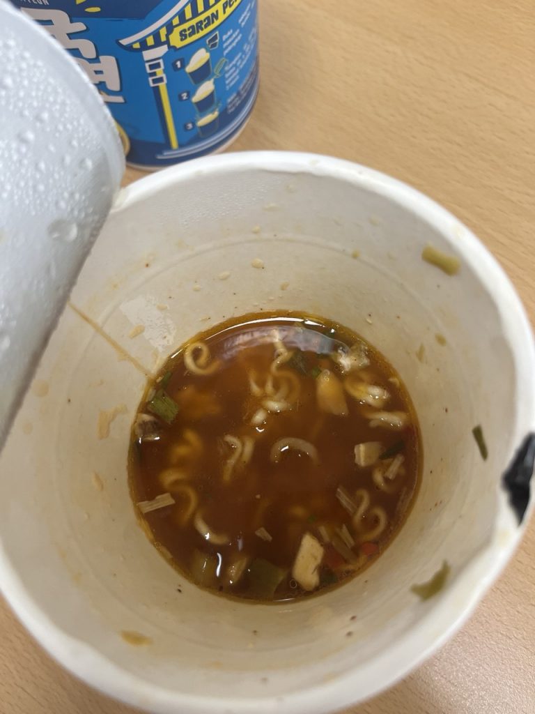 맛: 당황스럽지만 3개 라면 중 가장 맛있다. 할랄 신라면보다 덜 밍밍하다. 물론 비교적 맛있다는 거지, 국내 성골 라인업에 비하면 맛의 깊이가 부족하다. 비슷한 국내 라면으로는 마트 PB 상품이 있다. 육수 우릴 돈을 고객에게 돌려주는 대 인플레이션 마케팅스러운 맛이 난다. 가볍고, 화학적인 매운 맛. 얼큰 구수한 풍미가 사라진 그런 맛이다. 대신 면이 한국 제품에 비해 아주 약간 푸석한 편이라 빨리 먹는 게 좋다. 평점: 8/10점 “웬만한 PB 라면보다 맛있다”