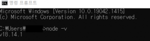 – cmd를 열어 ‘node -v’를 입력하여 제대로 설치여부 확인가능.