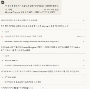 * 노션과 MCP를 연동 후 클로드가 제작한 내용